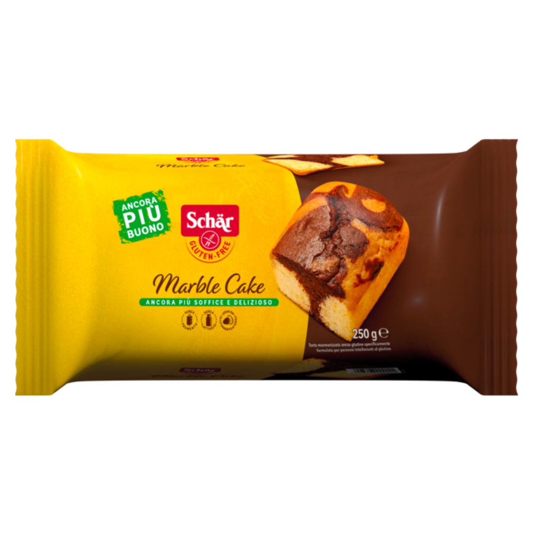 Leckerer glutenfreier Marmorkuchen von Schär. Neben glutenfrei ist der Kuchen auch kuhmilchfrei und laktosefrei. Schneiden Sie den Kuchen in Scheiben und geniesse es im Handumdrehen!